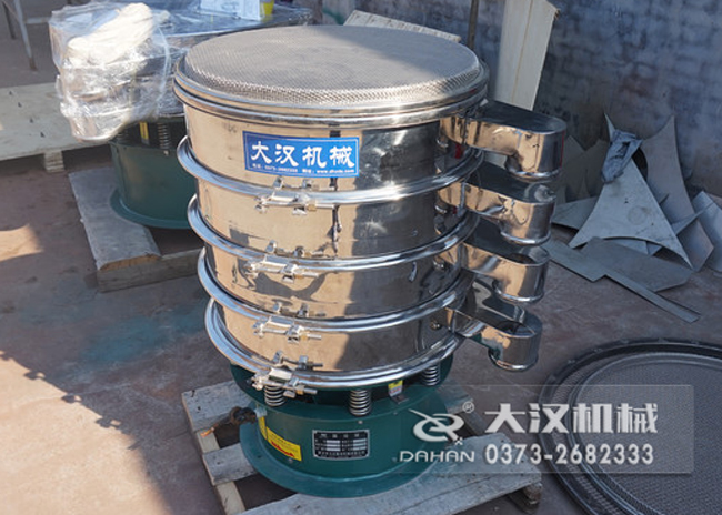DH-600-3S型篩分機為600mm直徑三層四出口不銹鋼旋振篩,子母網分離式網架,底座為碳鋼材質。