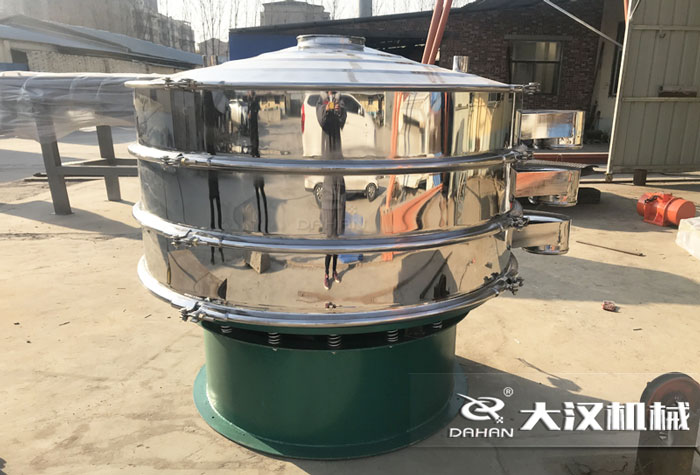 DH-1500-2S型振動(dòng)篩分機(jī)為1500mm直徑單層兩出口不銹鋼三次元振動(dòng)篩,子母網(wǎng)分離式網(wǎng)架,與物料接觸半部為304不銹鋼材質(zhì),底座為碳鋼材質(zhì)。